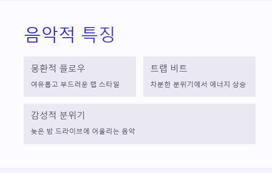 몰리얌의 음악 스타일은 몽환적이면서도 감성적인 분위기를 지닌 것이 특징입니다. 대표곡 **"Burning Slow"**를 비롯해, 포부를 담은 "What You Wanna Be", 신비로운 느낌의 "Ninggyo" 등에서 이러한 색깔을 확인할 수 있습니다. 힙합 팬들은 몰리얌의 차분하면서도 중독성 있는 음악을 늦은 밤 드라이브나 감성적인 순간에 듣기 좋은 곡으로 평가하고 있습니다.