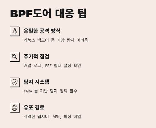 • BPF도어 악성코드는 리눅스 백도어 공격 중 가장 은밀한 방식 중 하나