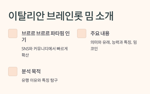 - 이탈리안 브레인롯은 AI 이미지와 음성 합성으로 만들어진 밈 콘텐츠입니다.