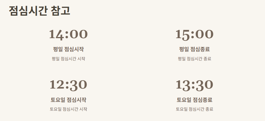 월~금 10:30~19:30, 토요일 10:00~16:00, 일요일 공휴일 휴무