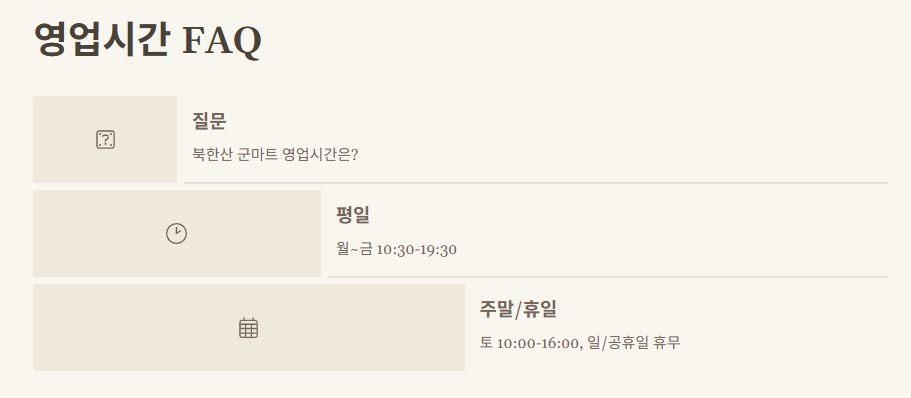 Q1: 북한산 군마트 영업시간은 어떻게 되나요?