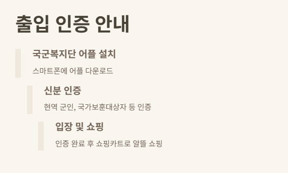 국군복지단 어플로 현역장병, 보훈대상자 등 출입 인증 필요해요.