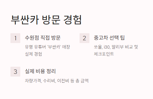 1. 부싼카 수원점 직접 방문 후기