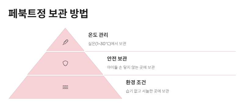 그냥 실온(1~30℃)에서 보관하면 된대. 아이들 손 닿지 않는 곳에 두는 건 기본이고, 습기 없고 서늘한 곳에 두는 게 좋아. 따로 냉장보관은 필요 없대.