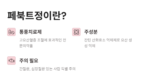 사실 나도 처음엔 ‘페북트정’을 듣고 ‘이게 뭐야?’ 했거든. 우리 할아버지가 통풍 때문에 병원 갔을 때 이 약을 처방받았는데, 이름부터 되게 생소해서 나도 찾아봤지. 그랬더니 통풍환자들 사이에서는 꽤 유명하더라고!