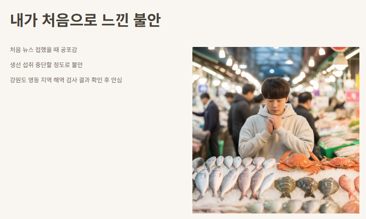 3. 시민들과 어민들의 솔직한 반응 지역 어민들과 인터뷰하면서, 불안과 일상의 교차점을 직접 들을 수 있었어요.