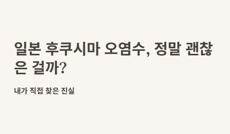 이건 좀 안심이 되더라구요. 연관 키워드인 ‘후쿠시마 해양 방류’, ‘오염수 안전성 검사’, ‘삼중수소 위험성’, ‘ALPS 정화 시스템’, ‘해양 생태계 영향’ 이런 것들을 더 찾아보면서 점점 냉정하게 볼 수 있게 되었어요.
