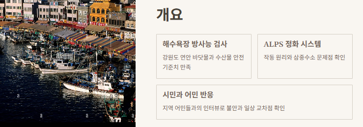 근데 궁금함이 너무 커서 직접 자료를 찾아보기 시작했어요. 그러다가 알게 된 게 강원도 영동 지역 해역에서는 방류 이후 계속해서 방사능 검사를 진행하고 있대요. 10개월 동안 기준치 이상 검출된 적이 없고, 그 결과를 바탕으로 이번 여름에도 해수욕장 문을 열기로 했다는 거예요.