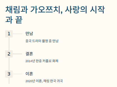 - 채림의 입장: 전남편 가오쯔치 재혼에 대해 담담한 반응을 보이며, 아이에게 영향 없다면 상관없다는 입장을 밝혔다.