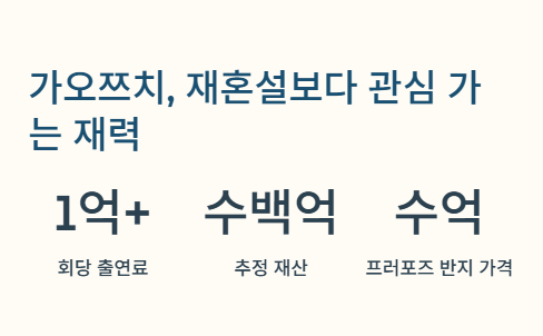 가오쯔치 재산 이야기도 요즘 많이 나오더라. 중국에선 엄청 인기 있는 배우라서 회당 출연료가 1억 원 넘는다는 말도 있고, 부동산 투자도 엄청 많이 했다고 해. 예전에 채림한테 프러포즈할 때 준 반지가 몇 억짜리였다나 뭐라나… 진짜 왕자님 스타일이었음 ㅋㅋ