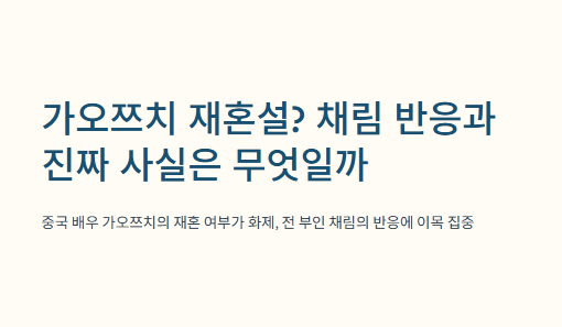 중국 배우 가오쯔치의 재혼 여부가 다시금 화제가 되면서, 전 부인 채림의 반응이 대중의 이목을 끌고 있다. 아래는 관련 핵심 정리다.