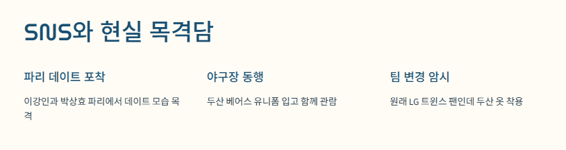 - 파리 목격담과 잠실 야구장 사진이 열애설의 시작이었다