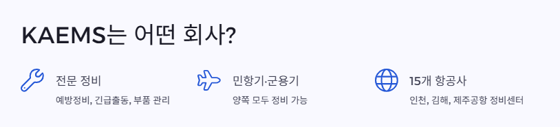 한국항공우주산업(KAI) 자회사로, 민간항공기 및 군용기의 정비를 전문으로 하는 국내 MRO 기업이에요.