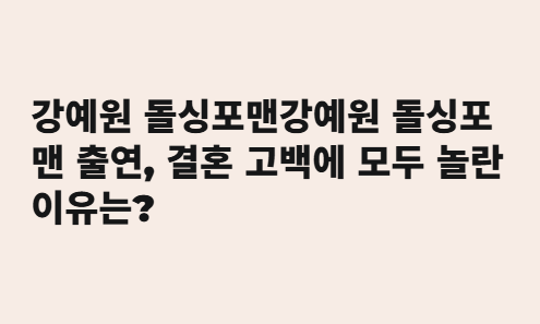 안녕 블로그 친구들~! 오늘은 내가 진짜 웃고 울고 심쿵했던 예능 얘기를 가져왔어! 바로 SBS ‘신발 벗고 돌싱포맨’에 강예원이 출연한 거!