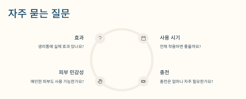 그리고 이 제품은 산부인과 의사가 자문 개발했다고 해서 더 믿음이 가요. 전자파나 배터리 걱정도 없고, KC인증까지 받았대요. 실제로 자극도 부드럽고 따뜻함이 금방 올라와요.