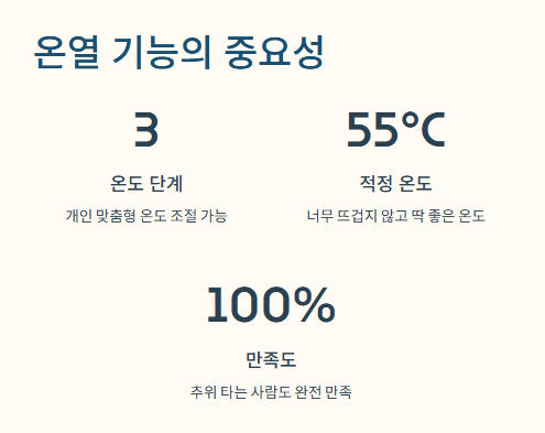 사용자들은 빠른 온열감, 간편한 착용, 외출용으로도 좋은 점을 장점으로 꼽아요.