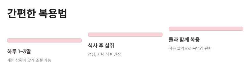 최소 4주 이상은 꾸준히 복용하는 걸 추천드려요. 단기 효과보다는 루틴 형성이 중요하답니다.