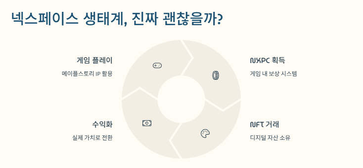 특히 저는 ‘실사용 코인’이라는 점이 진짜 신기했어요. 보통 코인하면 그냥 숫자 놀음 같잖아요? 근데 넥스페이스 코인은 게임 속 재화로도 쓰이고, 실제로 게임 아이템이나 NFT랑도 연결된다는 점이 신선했어요.