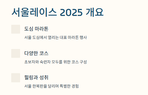 서울레이스 2025는 서울 도심에서 열리는 대표 마라톤 행사로, 초보자와 숙련자 모두를 위한 다양한 코스가 마련되어 있어요. 이 글에서는 접수 일정, 코스 정보, 준비 꿀팁까지 한 번에 확인할 수 있도록 정리했어요. 서울 한복판을 달리며 힐링과 성취를 동시에 얻을 수 있는 이 특별한 대회, 함께 알아볼까요?