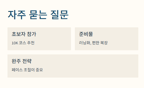 : 하프 마라톤과 10K 두 가지 코스로 나뉘며, 초보자도 도전하기 쉬운 평탄한 구조예요. - 준비 꿀팁과 주의사항