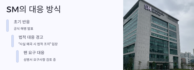 A. SM은 "사실 왜곡 시 법적 대응" 입장을 밝혔어요.