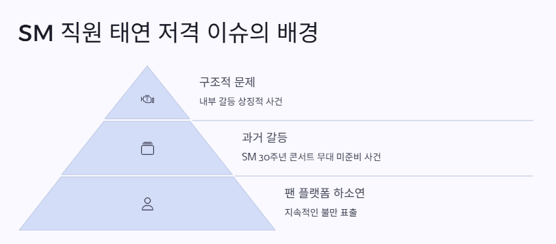 이런 전적 때문에 "SM 직원 태연 저격" 글은 단순한 해프닝이 아니라 구조적인 문제를 드러낸 거란 분석이 많아요.