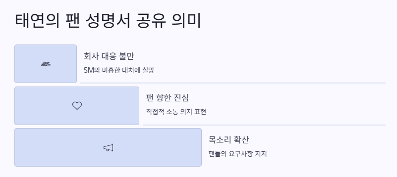 특히 태연이 팬 성명서를 직접 SNS에 올린 건, 소속사에 대한 실망과 분노를 드러낸 거라는 해석이 많았어요.