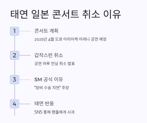 - 태연 일본 콘서트 취소 이유: 장비 문제, 책임 공방