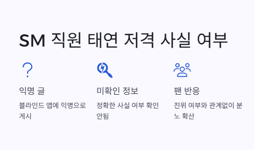 - SM 직원 태연 저격 사건: 블라인드 앱을 통한 내부 폭로