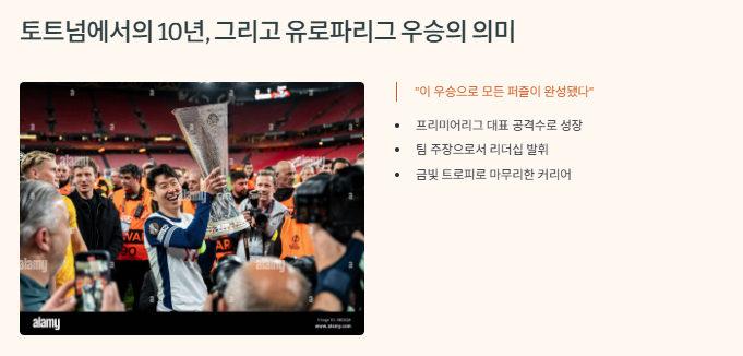 손흥민이 토트넘에 합류한 이후 10년 동안 이룬 기록은 그 자체로 클럽의 역사를 새로 쓴 이야기였어요. 프리미어리그를 대표하는 공격수로 성장한 그는 팀의 주장으로서 리더십을 발휘했고, 수많은 경기에서 팀을 구해냈어요. 특히 2024-25시즌 유로파리그 우승은 손흥민 커리어의 마지막을 장식한 금빛 트로피였죠. 그는 기자회견에서 “이 우승으로 모든 퍼즐이 완성됐다”고 말하며 결정을 내린 배경을 설명했어요. 이는 단순히 성적 때문이 아니라, 자신이 이룰 수 있는 모든 것을 이룬 후 새로운 도전을 향한 열망이 생겼기 때문이에요.