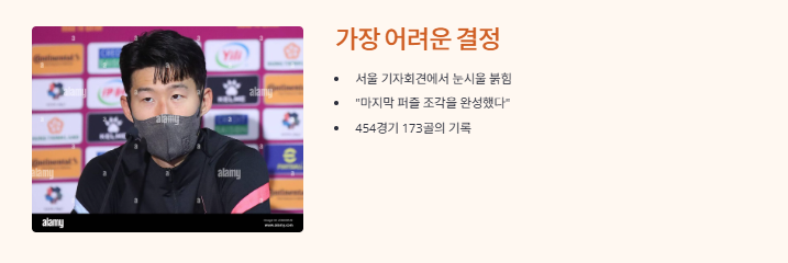 손흥민은 기자회견에서 “가장 어려운 결정이었다”고 말하며 눈시울을 붉혔어요. 서울에서 열린 기자회견장에는 수많은 팬들이 찾아와 그의 마지막 인사를 들었고, 손흥민은 그동안 함께한 추억과 토트넘에서 이룬 기록들에 대해 진심 어린 감사를 전했죠. “마지막 퍼즐 조각을 완성했다”라는 말처럼, 유로파리그 우승으로 지난 시즌을 마무리한 뒤 새로운 도전을 결심한 그의 의지는 깊은 여운을 남겼어요. 팀 주장으로서 이끌어온 10년, 454경기 173골이라는 기록은 단순히 숫자가 아닌 손흥민의 헌신과 열정을 증명해주는 상징이에요.