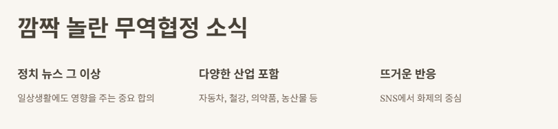 솔직히 말해서 나 같은 고등학생한테 ‘무역협정’ 같은 단어는 그냥 어려운 용어처럼 느껴졌어. 근데 이번 트럼프 英 무역협정처럼 자동차, 철강, 의약품, 농산물 같은 실생활 제품이 연관되니까 뉴스가 좀 더 가깝게 느껴졌어.
