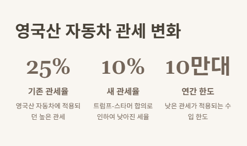 우리 아빠가 영국 자동차 브랜드 좋아하시거든. 요즘 환율이랑 관세 때문에 수입차 가격 엄청 올랐는데, 이런 정책 바뀌면 진짜로 자동차 값에도 변화가 있을 수 있겠다 싶었어.