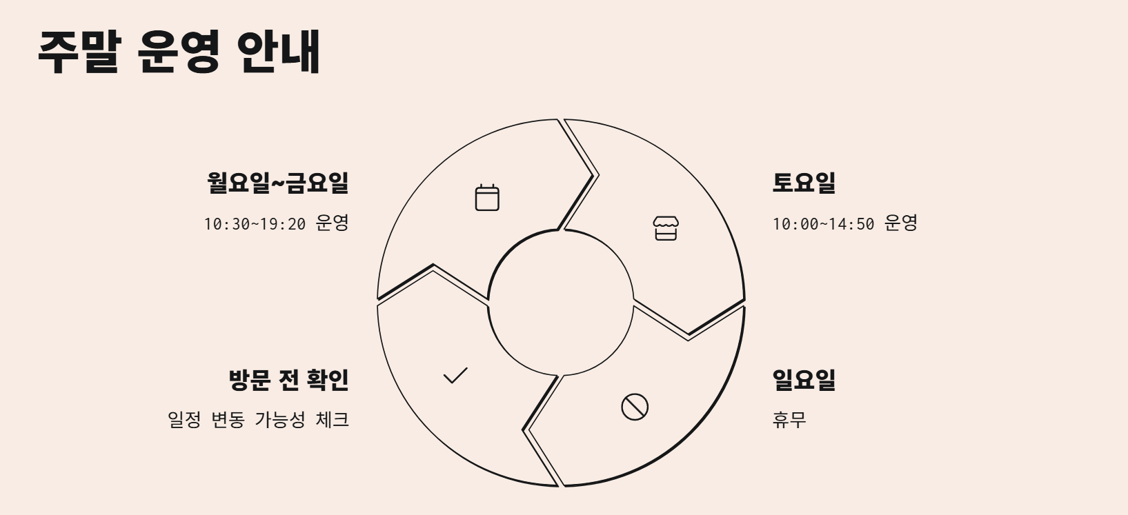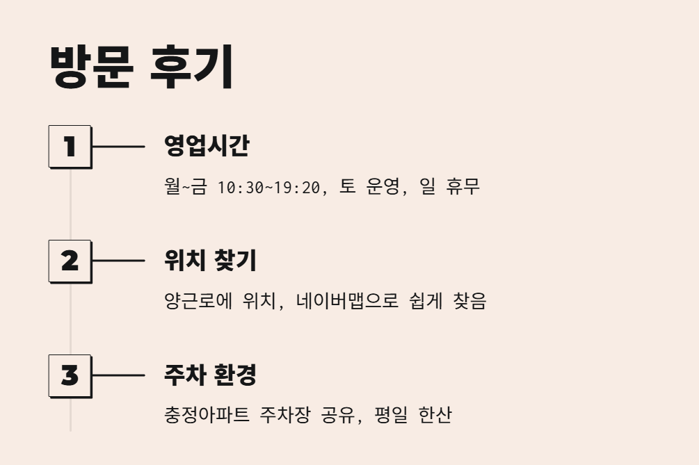 → 평일 10:30~19:20 / 토요일 10:00~14:50 / 일요일 휴무